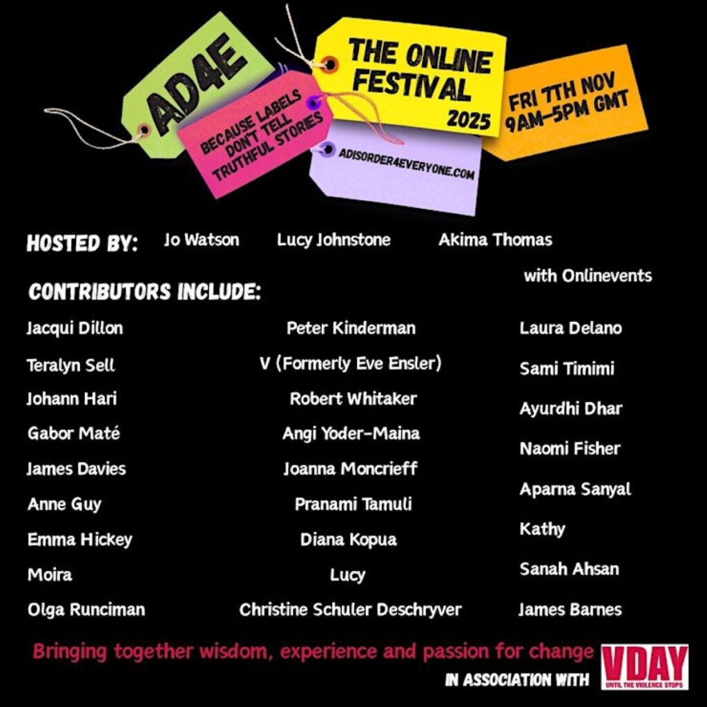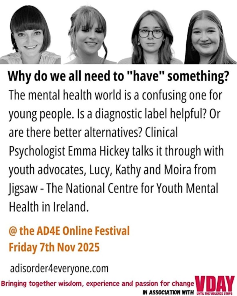 AD4E festivalen 2025 er ein heil dag med presentasjonar, foredrag og samtalar – som alle vil utfordre kulturen rundt psykiatriske diagnosar & liding!